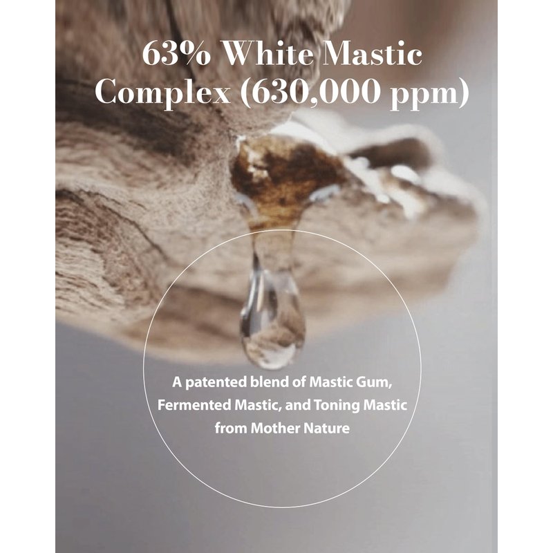 - MASTIC GUM - Each bottle of Mastic 6-Hours Ampoule contains 630,000 ppm of White Mastic Complex, a unique blend of Mastic Gum, Fermented Mastic, and Toning Mastic, an ingredient patented by Mastina. Mastic Gum is a natural plant extract derived from the Pistacia lentiscus tree native to the Greek island of Chios that can help to promote clear and even skin tone, improve elasticity, and reduce the appearance of fine lines.