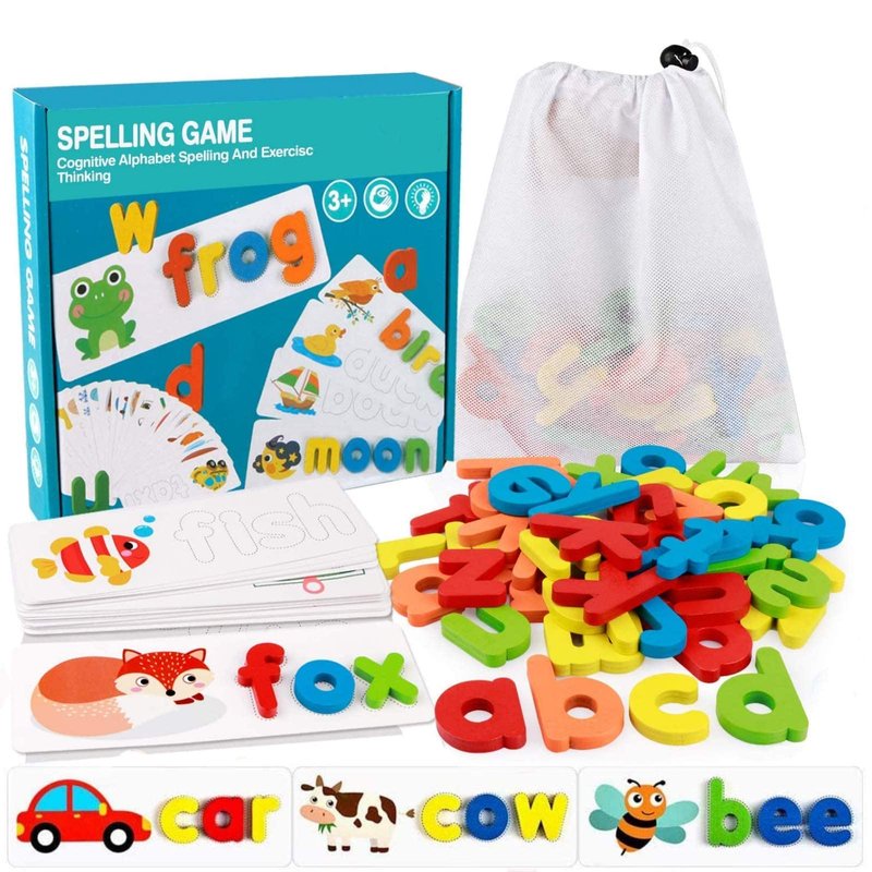 MASTOUR See and Spell Learning Toys,Matching Letter Game Words for Kids,Educational Learning Toys for Preschool Kindergarten 3-7 Year Old Girls Boys (28 Cards+52 Letters) +1