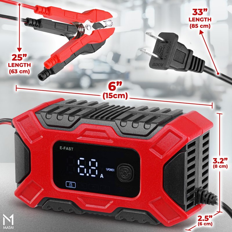 Mata1 Car Battery Charger (12V / 6A), Automotive Trickle Charger for Lead Acid Batteries, Smart LCD Display w/ 4 Charging Modes, Automobile Maintainer for Car, Motorcycle, Lawn Mower, RV & ATV