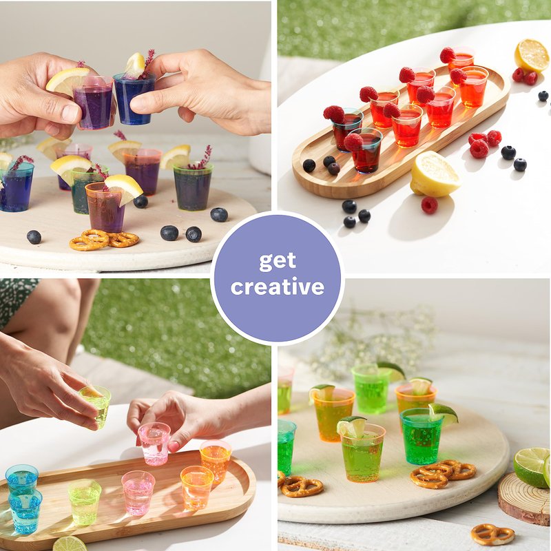 - 【Perfect for All Occasions】 Our mini colored shot glasses party shot cups can be used for sampling cups & tasting cups for wine tasting, Condiments, Sauces, Desserts, Jello Shots, tequila shooters and hold all kinds of alcohol, coffee, drinks, milkshakes, diced fruit & More.
