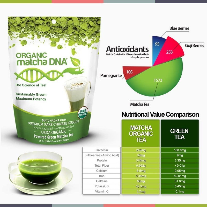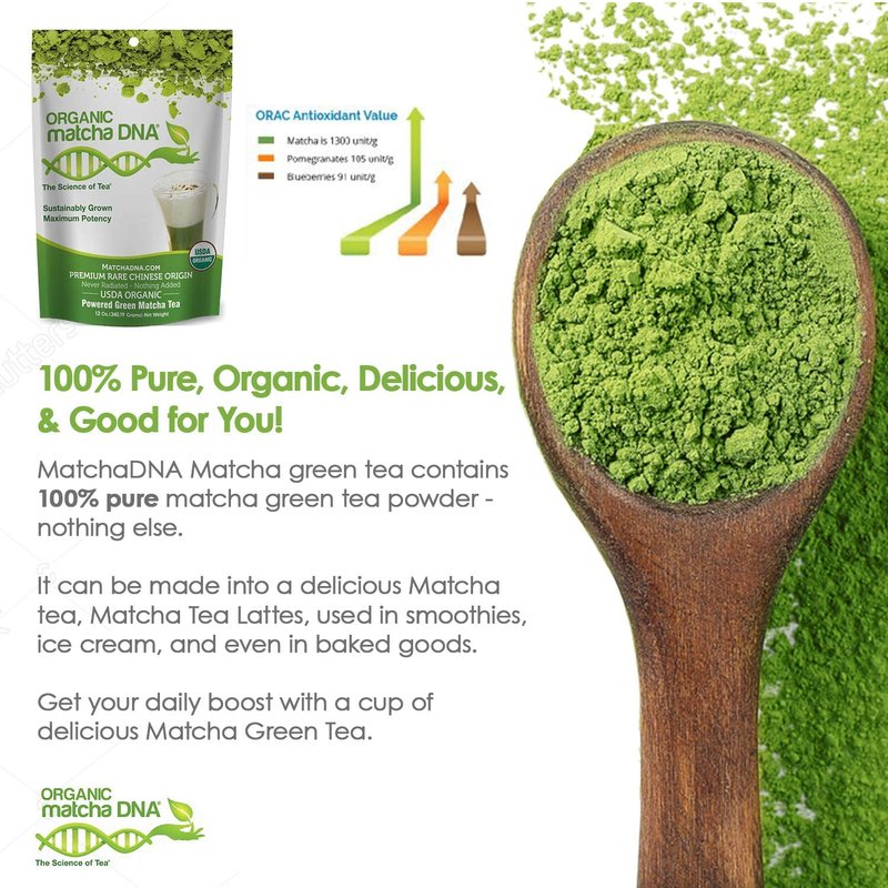 - 🍵DELICIOUS AND NUTRITIOUS TEA: 12 oz Bag of MatchaDNA Organic Green Tea Powder is naturally packed with antioxidants, vitamins, minerals, amino acids and EGCG's.