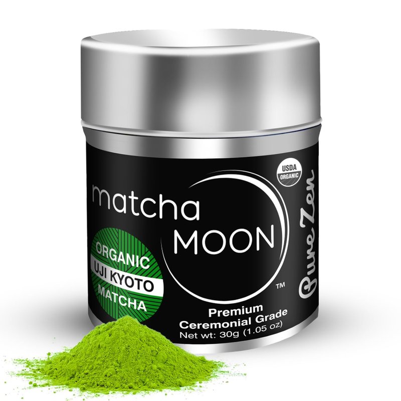 Elevate your tea experience with Matcha Moon's exquisite ceremonial grade matcha green tea powder. Sourced directly from an exclusive organic farm in Uji Kyoto, this Japanese green tea is the epitome of quality and taste. Grown in the shade to enhance its flavor and nutritional richness, our matcha latte powder bursts with antioxidants, phytonutrients, L-Theanine & EGCg, offering a truly invigorating and healthful energy solution. Rest assured, our green tea matcha powder is 100% USDA certified and rigorously tested for safety, ensuring you receive only the finest product. It caters to diverse dietary needs, being sugar-free, gluten-free, vegan, and suitable for keto & paleo diets. Indulge in the rich and savory flavor of organic matcha green tea powder, boasting elevated levels of chlorophyll and theanine for a delightful umami taste sensation. Unlike coffee, this matcha provides a calm, gentle, and sustained energy boost with just 1/3 the caffeine content. Say goodbye to jitters and crashes, and embrace a healthier energy alternative. Experience the pure essence of Japanese tea and its delectable energy boost. Don't wait; make Matcha Moon's organic matcha green tea a part of your daily routine and savor the healthiest, most delicious way to energize your day.