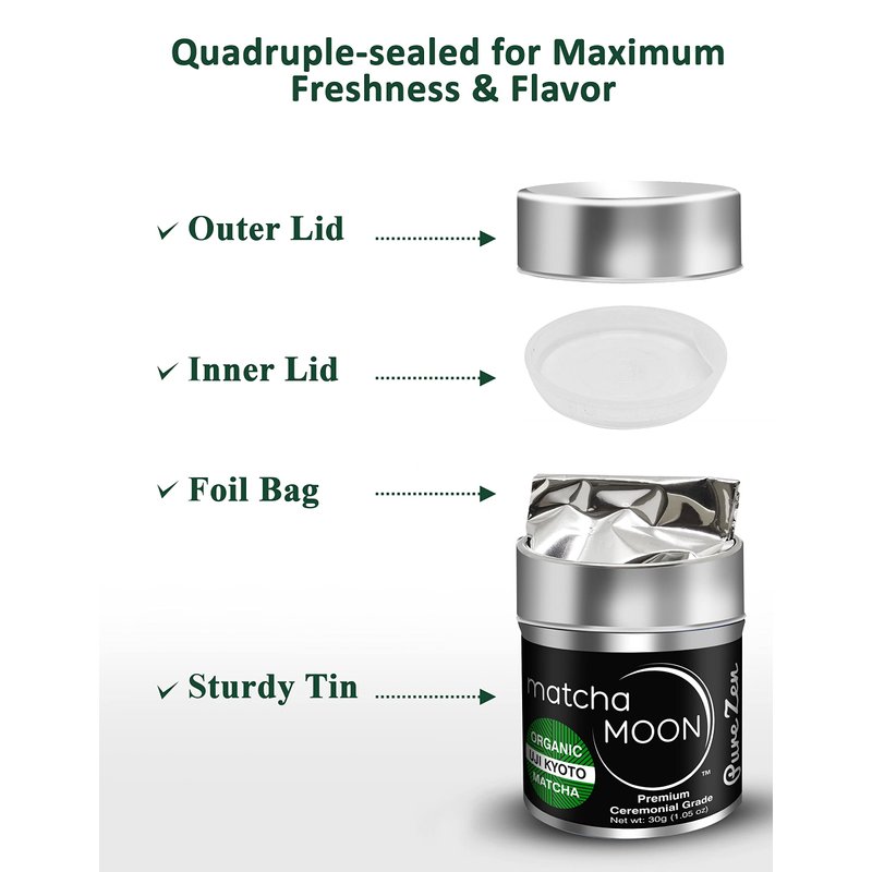 - 𝗠𝗔𝗧𝗖𝗛𝗔 𝗠𝗢𝗢𝗡 𝗔𝗦𝗦𝗨𝗥𝗔𝗡𝗖𝗘: New to Pure Zen? Begin your matcha ceremonial tea journey with our 30g tin, backed by our no-questions-asked guarantee. If you're not completely satisfied with your purchase, contact us, and we'll make it right.