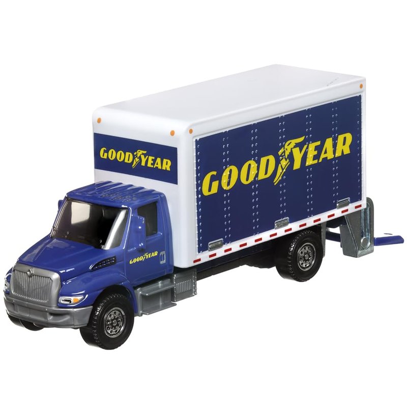 Matchbox Working Rigs Die-Cast Vehicle - International Box Truck - Inspired by Goodyear - Blue and White - 70th Anniversary Series