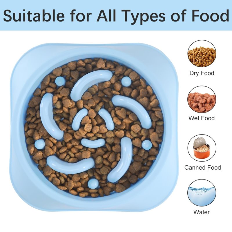 - FOOD DIVERSITY & SAFE MATERIAL: Dog dishes to slow down eating applies to dry, wet, and raw food diets. This cat slow feeder dry food and puppy slow feeder bowl can hold up to 2 cups of kibbles. Large dog slow feeder bowl is made of PP polypropylene material which is food-safe and non-toxic so that your puppies can feel free to use it. These small slow feeder dog bowls are durable, stand wear and tear, not easy to damage, so your lovely pups could regale on their meal safely.