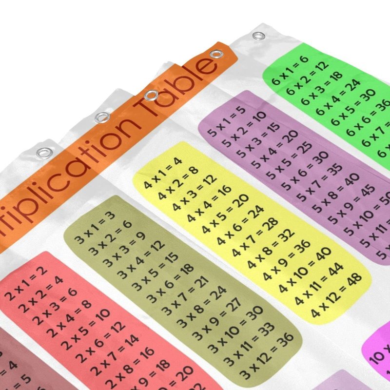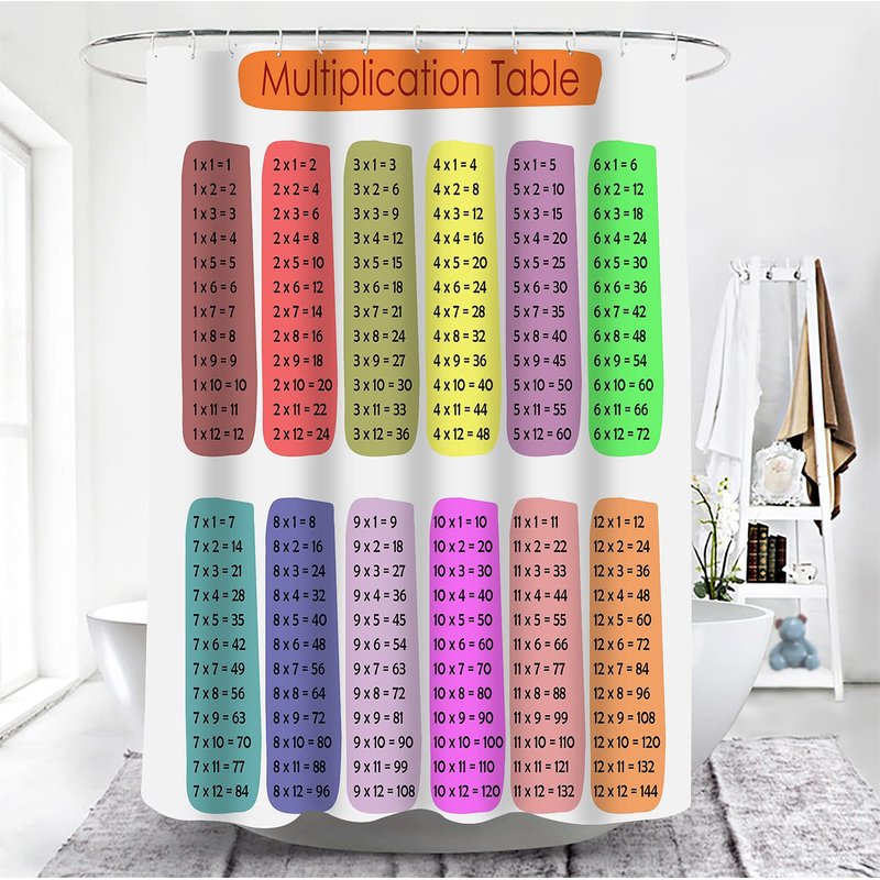 Math Shower Curtain Multiplication Table 1 to 12 Waterproof Shower Curtains Educational Style Bathroom Decor Polyester Fabric Shower Curtain Sets with Hooks 72x72 Inch
