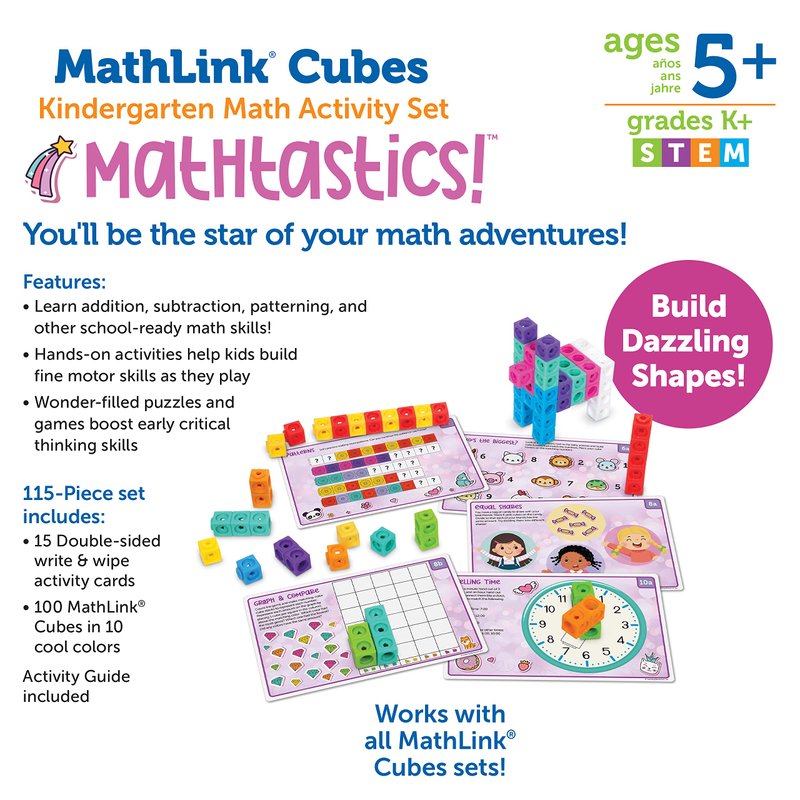 MathLink Cubes Kindergarten Math Activity Set Mathtastics!, Math Teaching Toys, PreKManipulatives, Children’s Math Games, 115 Pieces, Age 5+