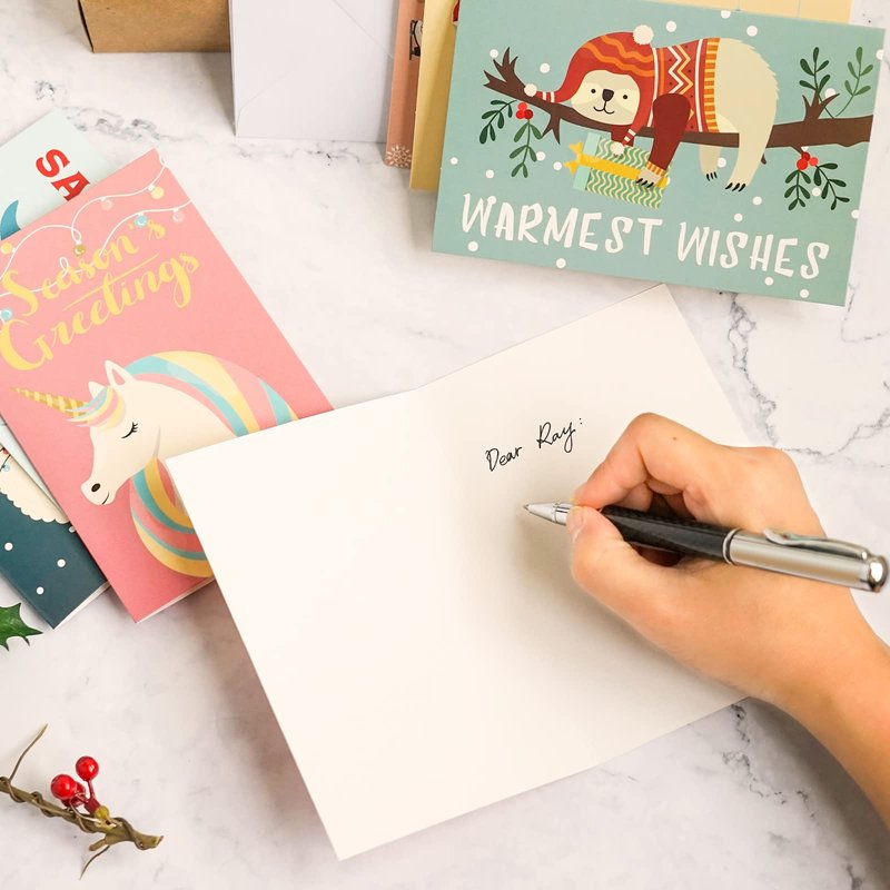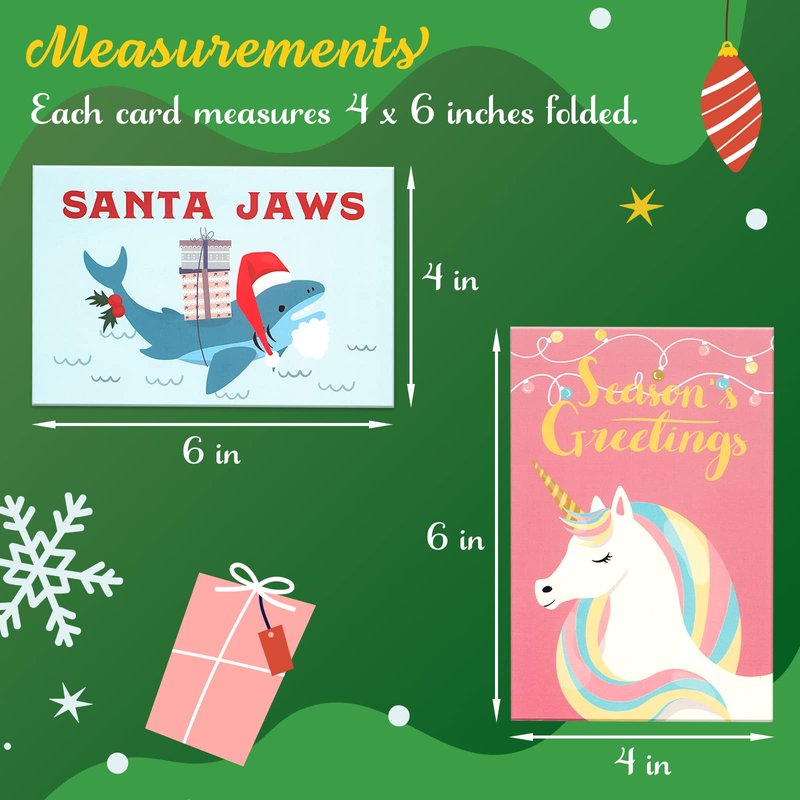 - 🦄 CHRISTMAS CARDS BULK SET: Box set contains 48 of Christmas greeting cards with 6 designs to wish your friends, acquaintances, and loved ones season's greetings and a happy holiday.