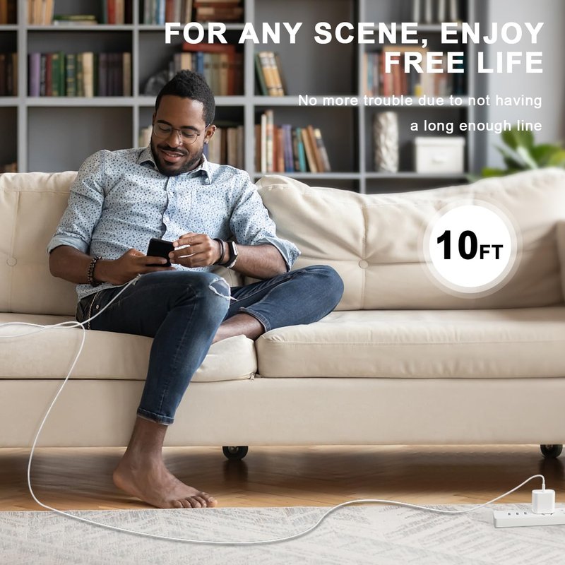 4. 10ft perfect length, you can charge your device in a comfortable position.