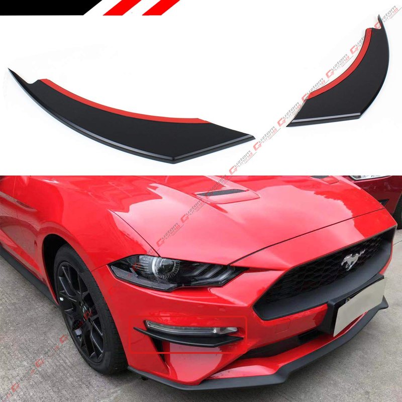 Matt Black Front Bumper Winglets Fog Light Vent Canard Strip Trim Compatible With 2018-2023 Ford Mustang GT ECOBOOST