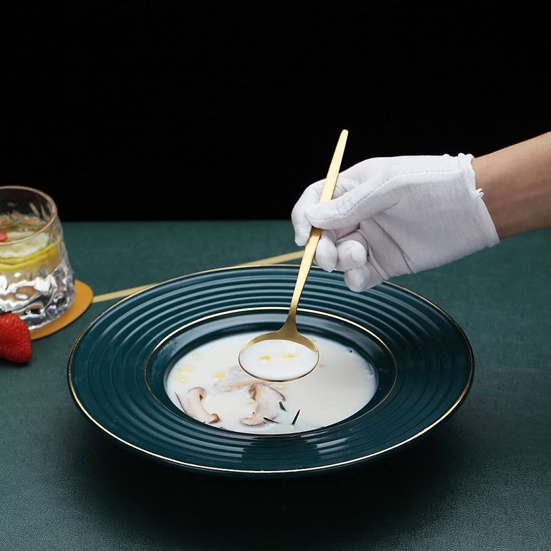 - 【Luxury and High Quality Finish】: These gold soup spoons are polish with matt finish and plating with titanium gold. Looks luxury and beautiful. The gold titanium plating would protect the surface of silverware from scrath. Food grade material healthy for daily use.