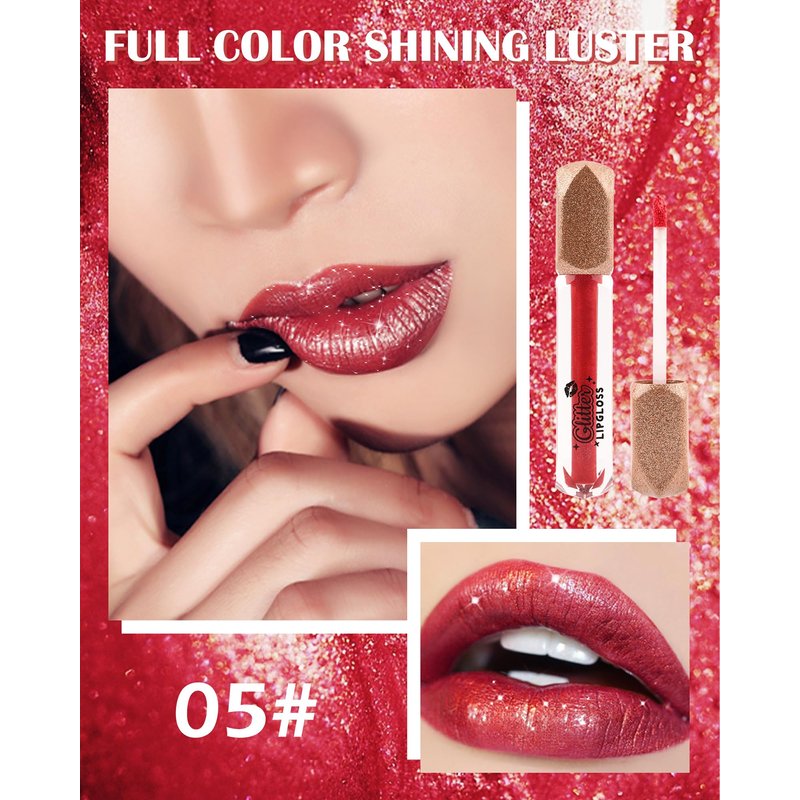 Matte Glitter Liquid Lipstick Lip Gloss- 1Pcs Long Lasting Waterproof Diamond Shimmer Red Pink Sparkly Glossy Metallic High Pigment Non-Stick Cup Tint Lip Stain, Christmas Makeup Gift for Women-05#
