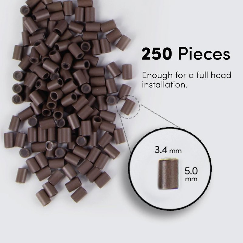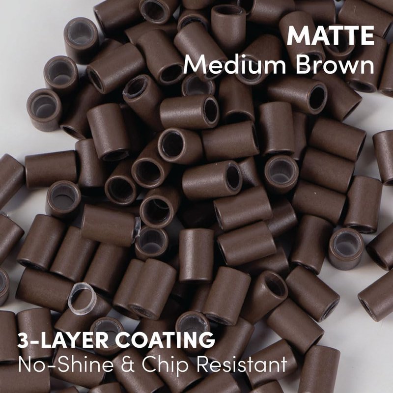 Matte Protubes by The Hair Shop, For I-Tip Hair Extension Silicone-Lined Micro Beads, Microlink, Rings, & Hand-tied Weft Methods, 3.4mm x 5.0mm (Matte Medium Brown)
