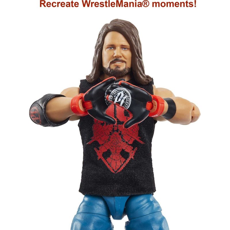 - The WWE AJ Styles WrestleMania Elite action figure stands approximately 6-in / 15.24-cm tall at authentic "Superstar Scale."