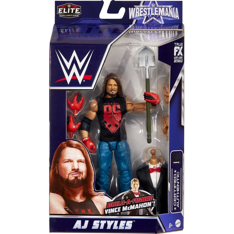 Mattel AJ Styles WrestleMania Elite Collection Action Figure with entrance shirt & Vince McMahon Build-A-Figure Pieces, 6-in / 15.24-cm Posable Collectible Gift for Fans Ages 8 Years Old & Up