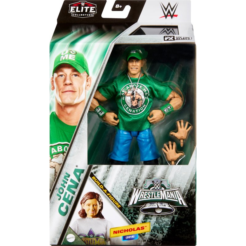 Mattel WWE Elite Collection WrestleMania Action Figure Set, John Cena Collectible with Accessory & Nicholas Build-A-Figure Parts