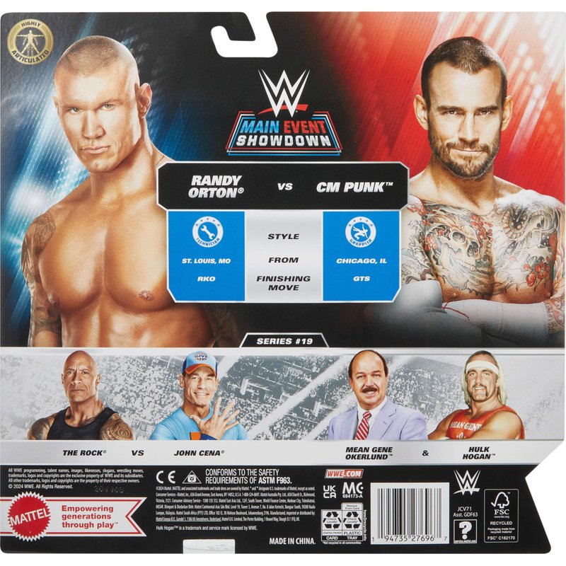 Mattel WWE Main Event Championship Showdown 2-Pack Action Figures & Accessory, Series #19 CM Punk vs Randy Orton Collectible Set