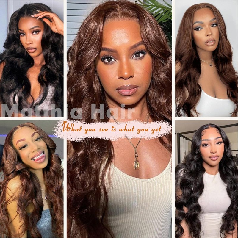 Matthia Synthetic Lace Front Chocolate Brwon Wigs for Black Women, 26inch Long Body Wave Glueless Wig 13x4x1 Lace Front Wigs Pre Plucked with Baby Hair Ready to Wear Wigs