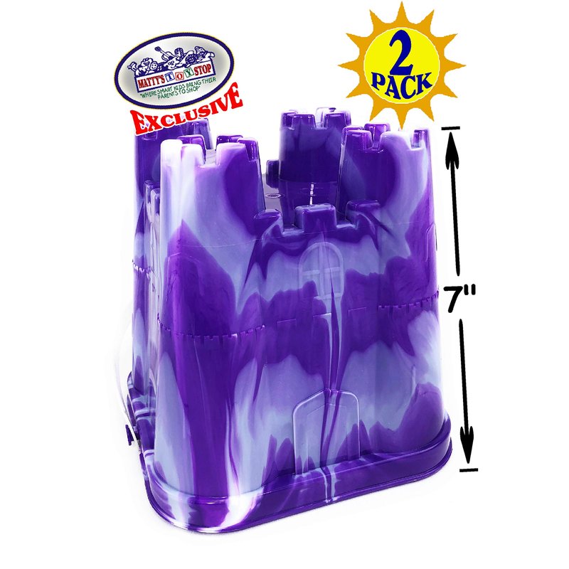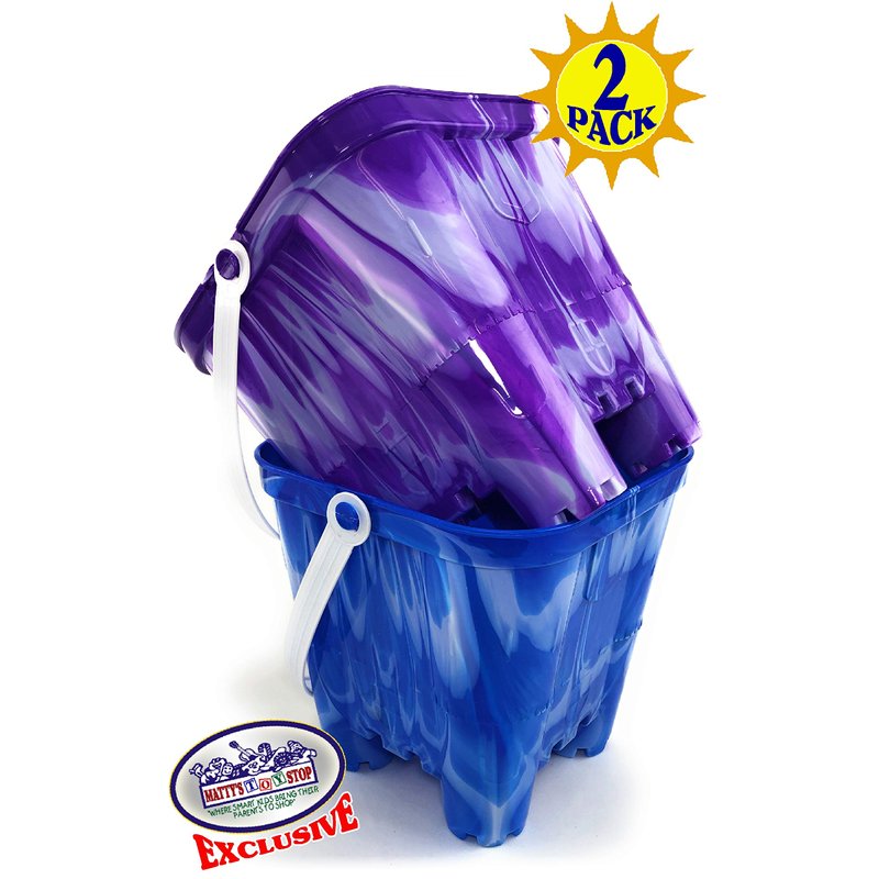 Matty's Toy Stop Beach Gear 7" Plastic Castle Mold Sand Buckets (Pails) Blue Swirl & Purple Swirl Party Set Bundle - 2 Pack