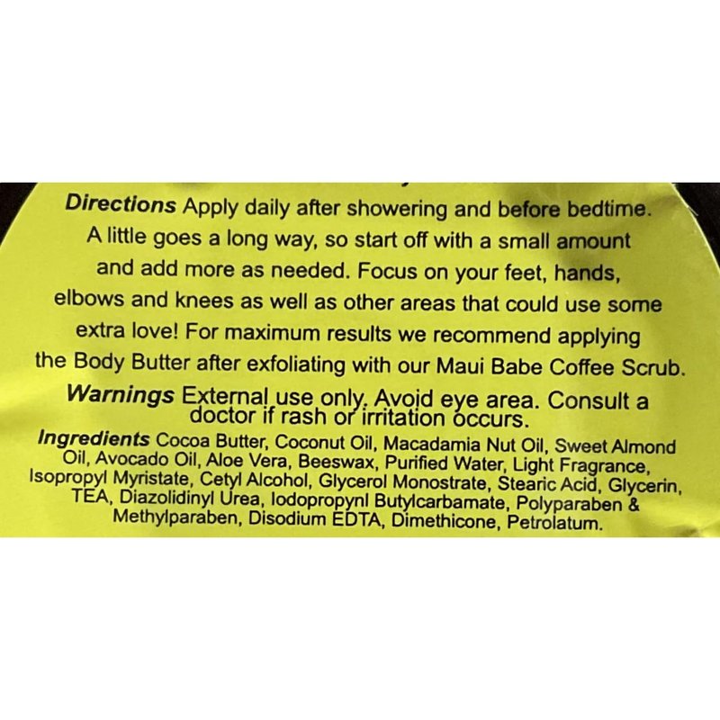 - Macadamia Nut Oil, Coconut Oil, Cocoa Butter