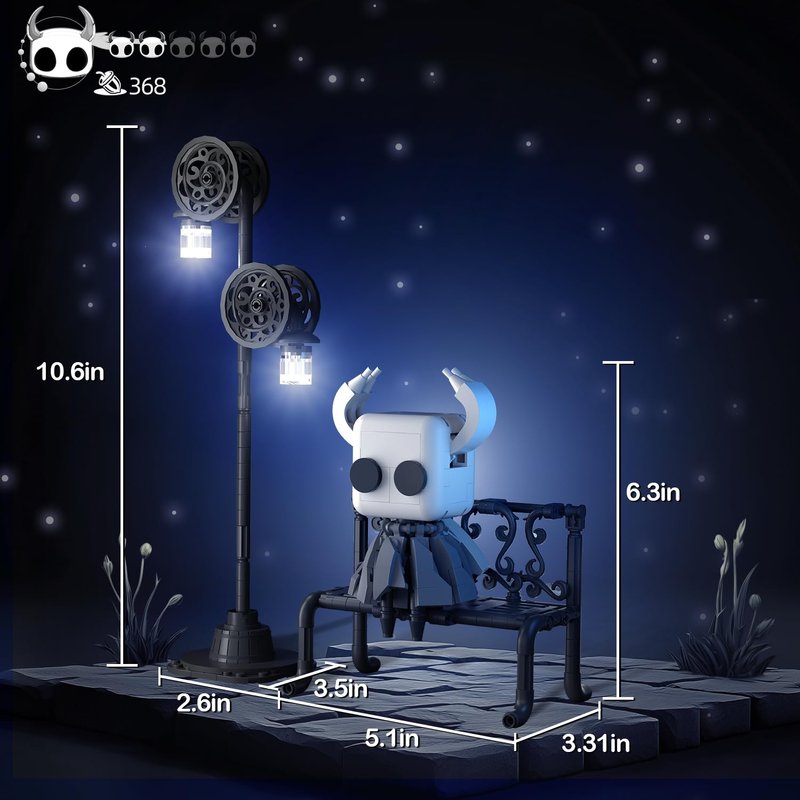 - Crafted Design – Inspired by a beloved game, this knight building toys capture the essence of the game’s iconic character. Every detail, from the knight’s intricately designed head and cloak to the bench and illuminated streetlamp, is meticulously crafted to bring the world of the game to life.