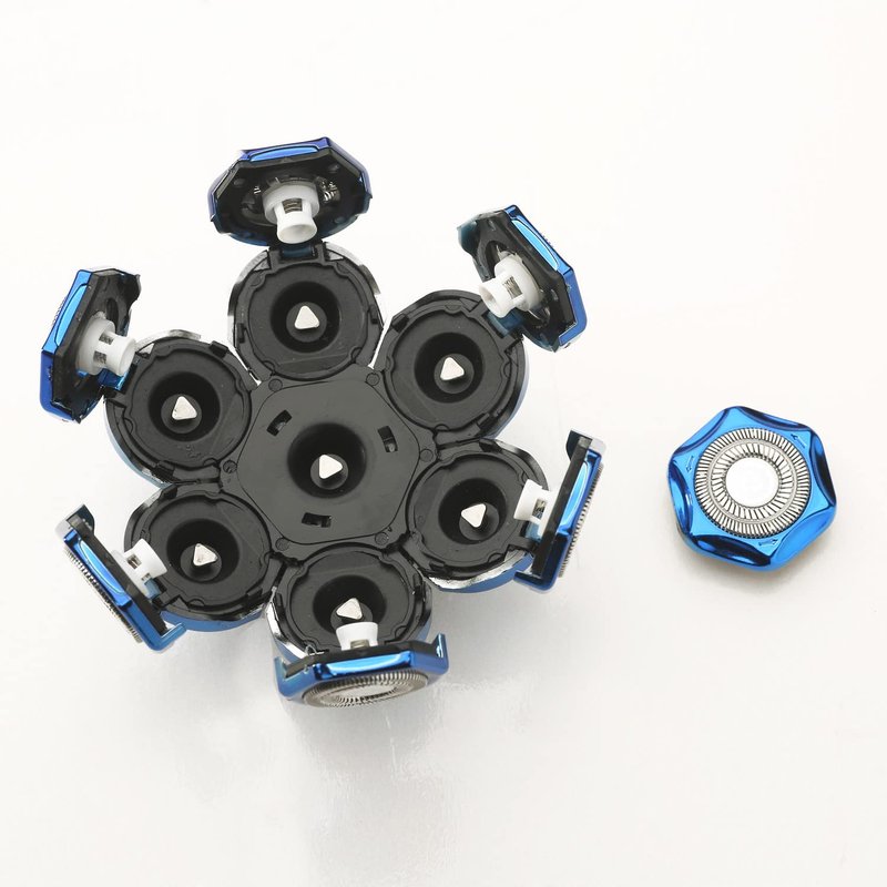 - New technology, new materials, high quality. Men's Electric Shaver Replacement Heads 7 Blades, Double-ring hypoallergenic stainless blades. offering closer and cleaner trimming without skin irritation.