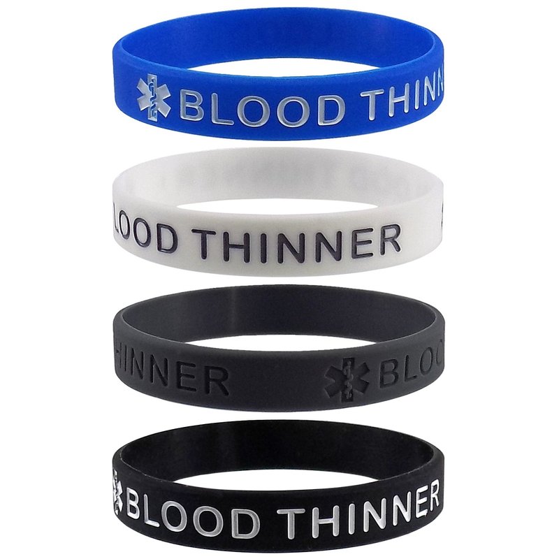 Max Petals BLOOD THINNER Medical Alert ID Silicone Bracelet Wristbands 4 Pack