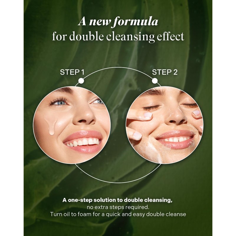 - OIL-TO-FOAM GENIUS FORMULA Simplify your daily skin care routine with this transformative oil based cleanser. The plant oils loosen pore buildup and erase stubborn makeup, then the plant-derived cleansing agents lather up to sweep away impurities and for a clear, calm complexion!