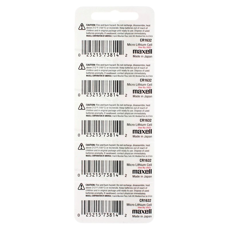 Maxell CR1632 3V Lithium Batteries (5 Batteries) Hologram Package