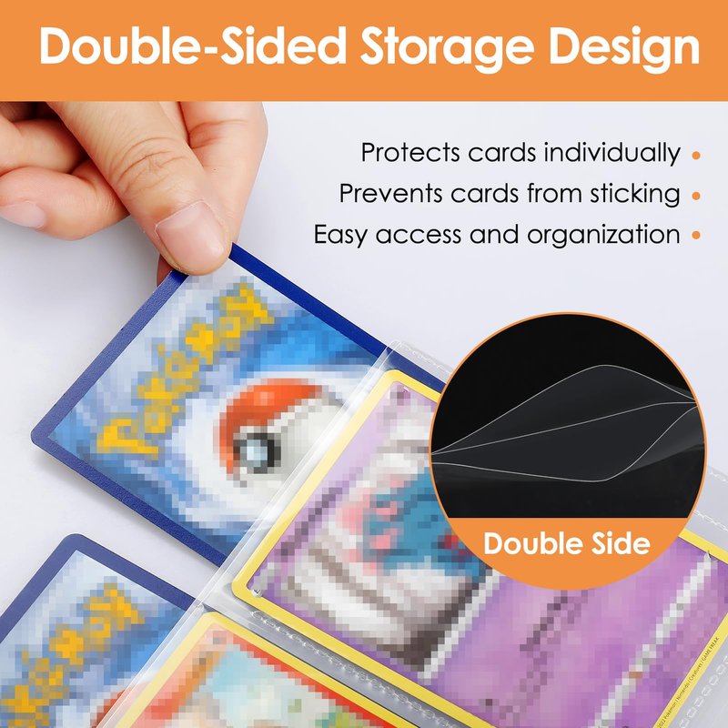 - Double-Sided Design: These trading card sleeves have the double-sided design. You can put 18 cards in one page. All 30 pages with 540 pockets, fit for card standard size 2 1/2 x 3 1/2 inch.