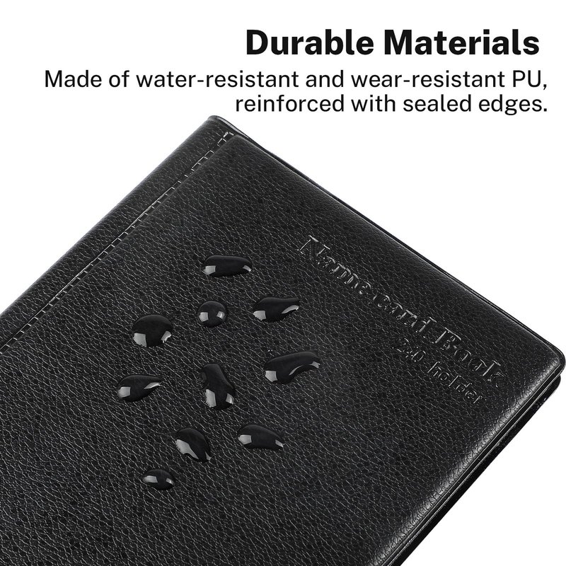 - Durable Materials: Our business card organizer is made of water-resistant and wear-resistant PU, reinforced with sealed edges and durable PVC business card sleeves. Our 18-month 100% satisfaction assurance instills confidence in your purchase.