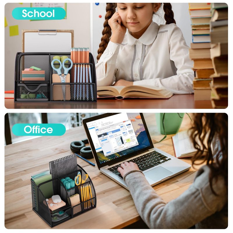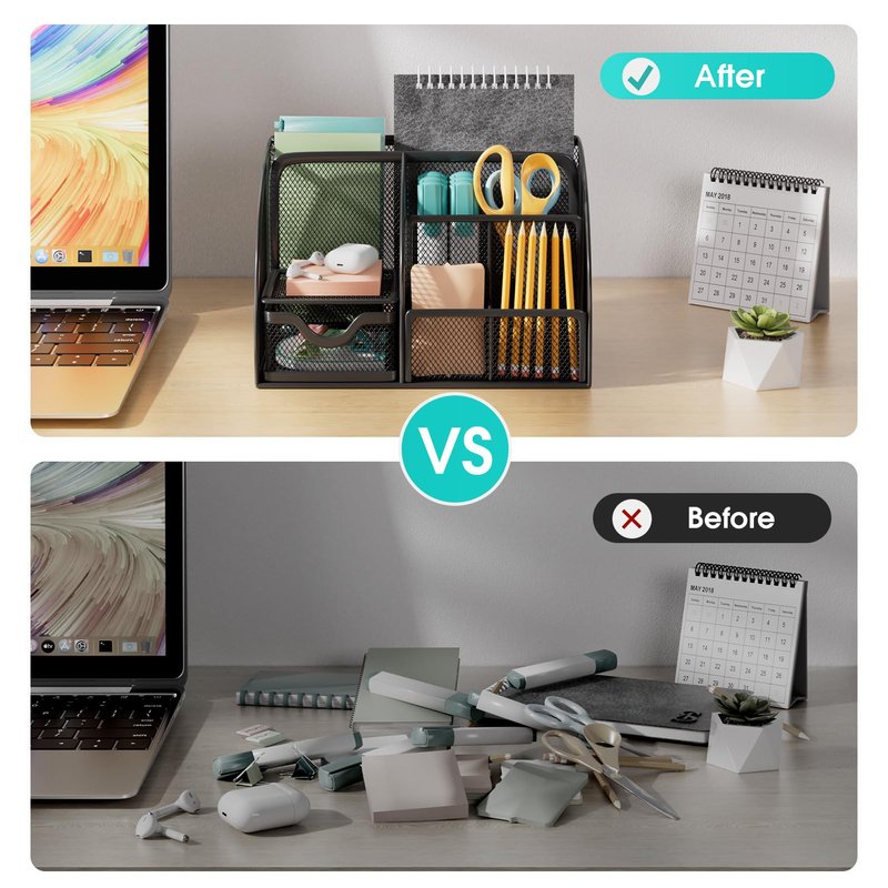 - Durable Material: The desk organizer is made of sturdy mesh metal, it has solid metal base. The smooth ABS coating and rounded edges make it attractive.