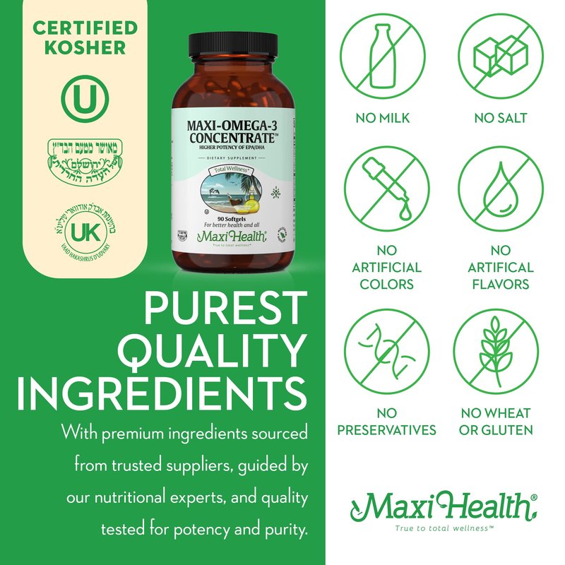 Maxi Health Omega-3 Fatty Acids Concentrate - Fish Oil - 2000Mg - 90 Gel Capsules - Kosher