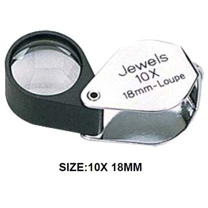 MAXIMIZE Corrective Jeweler's Loupe (MG-11810-86). Featuring a 10X magnification, this loupe comes equipped with an approximately 3/4" (1.9 cm) lens that stands out with its innovative design – it corrects both spherical and chromatic aberration. This advanced feature ensures elimination of color degradation, providing you with an impeccably sharp image. Renowned as one of the top corrective magnifiers available today, its foldable design makes it effortlessly portable. With a lens of 18 mm (approx. 0.7"), it's tailored for precise and intricate viewing. The loupe boasts a robust frame made from durable plastic, while its body is elegantly encased in metal brass. Whether you're a jeweler, stamp enthusiast, or coin collector, this loupe is the quintessential tool for detailed inspections.
