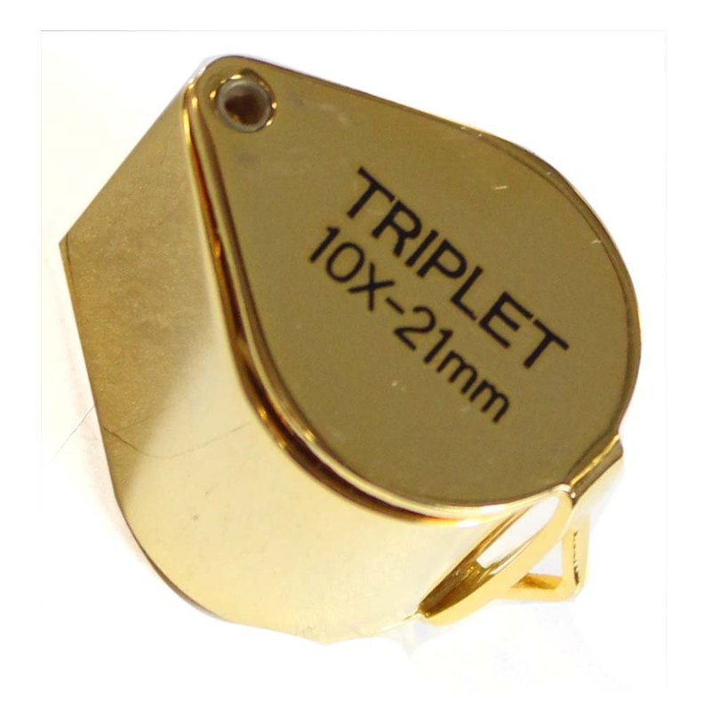 MAXIMIZE Gold Jeweler's Loupe, Model MG-12110. Crafted with precision and an eye for detail, this gold-plated loupe is as much an instrument of accuracy as it is an emblem of style. It features a 10x magnification capability, enabling users to perceive the minutiae with clarity and precision. The 21mm (2.1 cm) triplet lens ensures a detailed and distortion-free viewing experience. Further enhancing its sophistication, the loupe smoothly swivels into its protective case. This not only offers a sleek way to access the lens but also ensures that it remains safeguarded against dust, dirt, and potential scratches. Whether it's for professional use by jewelers and watchmakers or by enthusiasts in stamp and coin collecting, this loupe stands out, not just in function but also in form. Its lightweight, compact design allows you to comfortably carry it in your pocket or even attach it to a keyring or chain. The accompanying rich brown pouch provides a classic touch, ensuring that your loupe is always stored in style.