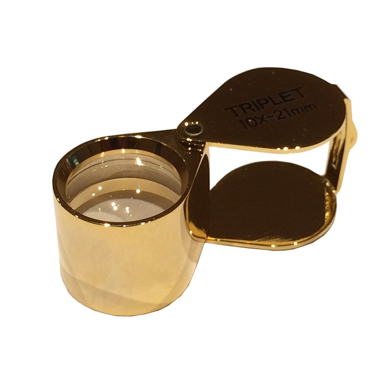 MAXIMIZE Gold Jeweler's Loupe | 10X Magnification | 21mm Triplet Lens | Swivel Case | Gold Plated