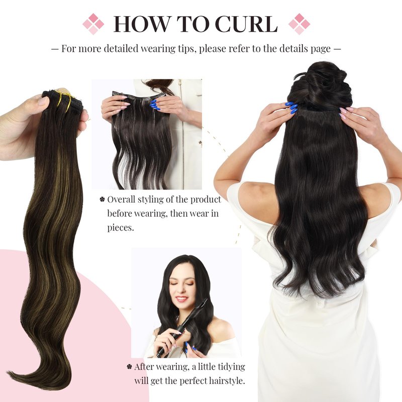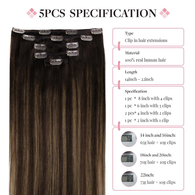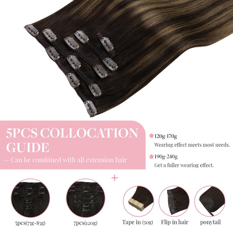 - 【5pcs Clip in Hair Extensions -- Flexibly Match with All Hair Extension Types】5 pieces per pack, the quantity is more suitable for flexibly matching other products. It can be used with clip in hair, tape in hair, wire hair, ponytail. There are more flexible options. For example, if 7pcs clip in hair extensions is not enough, you can buy 1 pack 7pcs and 1 pack 5pcs or 2 packs 5pcs hair extensions. This way you can save some money.