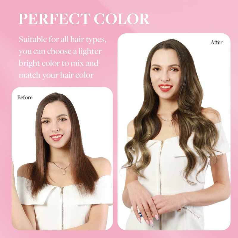 ♥ If you want curly hair styling, you can use a curling iron to curl hair extensions a nice look before wearing it. Once you wear it, you'll immediately have the same curly hair styling as the stylist did.
