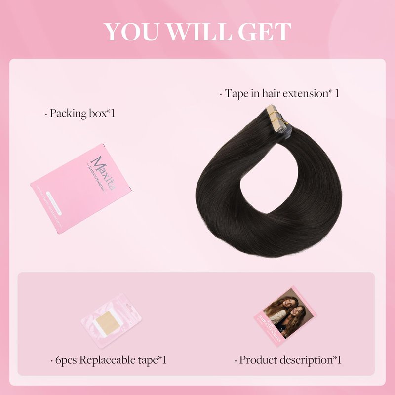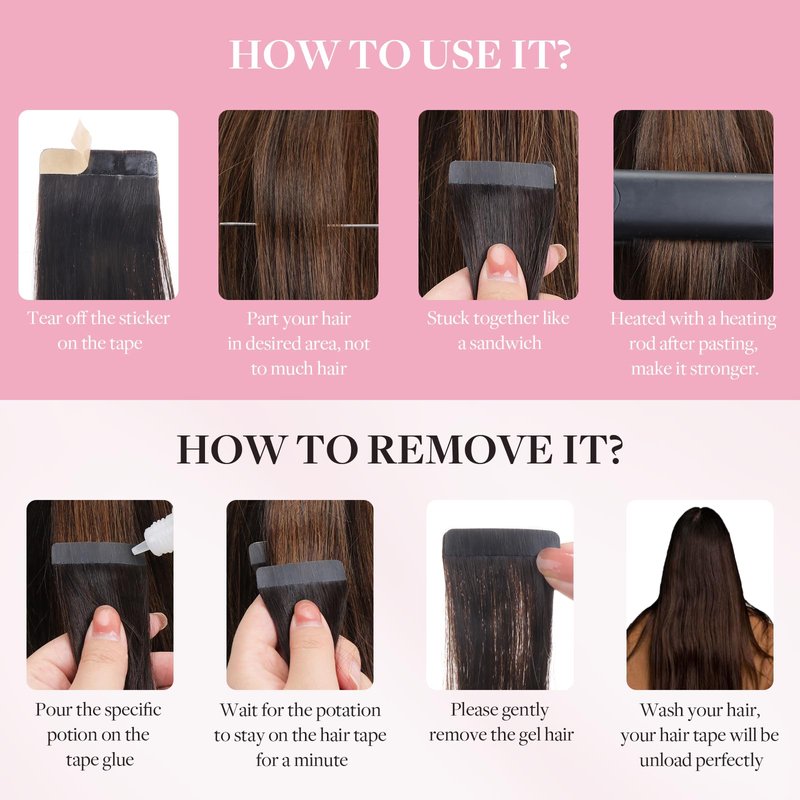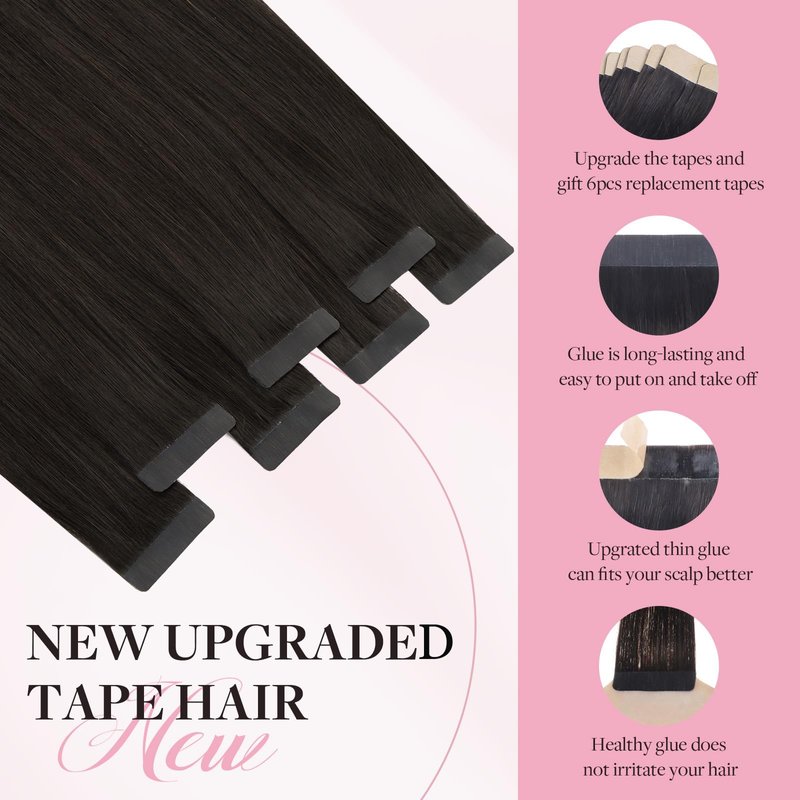 - Invisible tape in hair extensions: Adhesive double-sided tape has been upgraded with the latest ultra-thin glue, can make your scalp and tape fit better. Hair tape will be more fixed after heating, can be removed with cleaning fluid, no harm to your scalp
