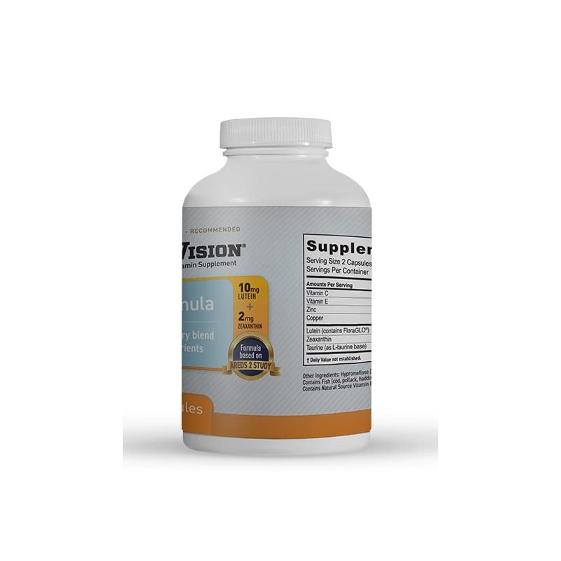 - AREDS2 based formula, including 10mg Lutein and 2mg Zeaxanthin to build macular pigment optical density (MPOD)