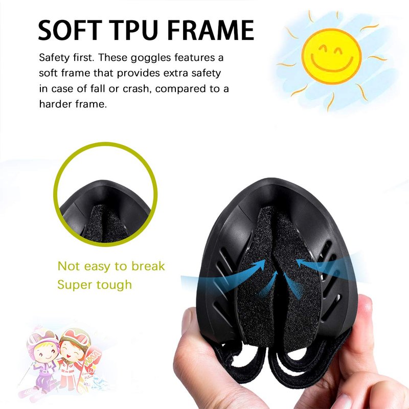 - 【SOFT TPU FRAME】 These goggles features a soft frame that provides extra safety in case of fall or crash, compared to a harder frame.