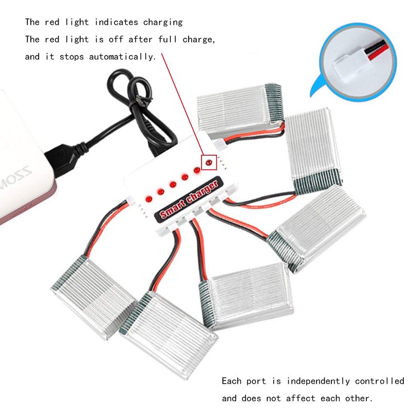 - This kind of charger can enable you to charge six batteries at the same time and make your rc helicopters have enough spare battery. So that you have more flight enjoy time.