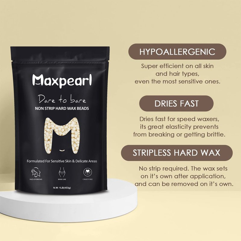 - CONVENIENT & SMOOTH APPLICATION - Maxpearl hard wax beads are perfect for both beginners who want to wax at home quickly, efficiently, and simply. They’re incredibly easy to use, warm up quickly, can be applied at low temperature to minimize skin reactions. No strips needed, set up quickly and remain pliable for gentle easy hair removal.