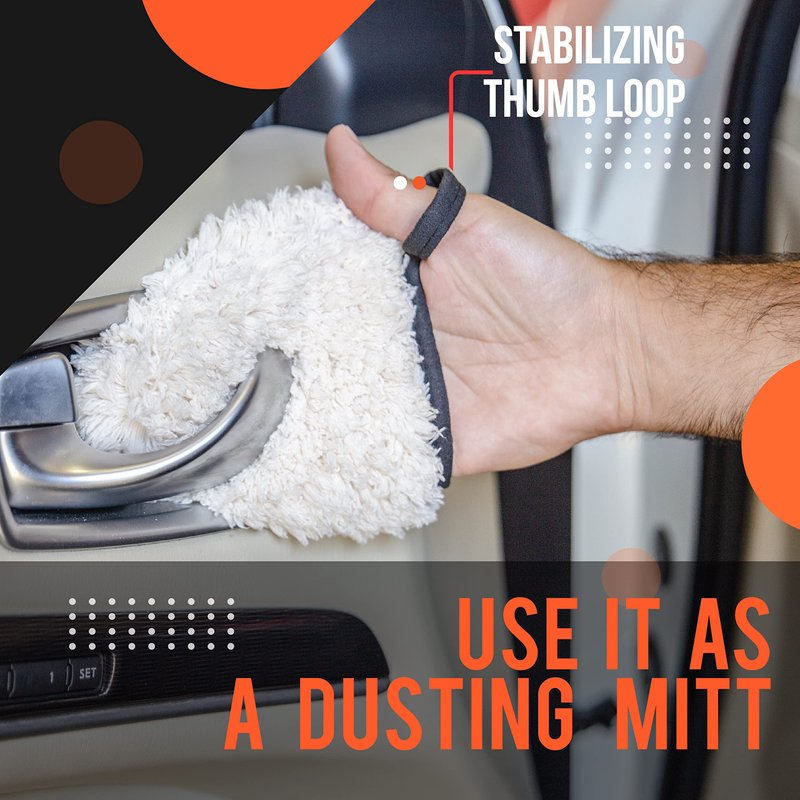 - Works Dry and Wet - The microfiber material works great as a dusting mitt. This car washing mitt picks up dust and particles in hard-to-reach areas like A/C vents, cup holders, and other tight areas.
