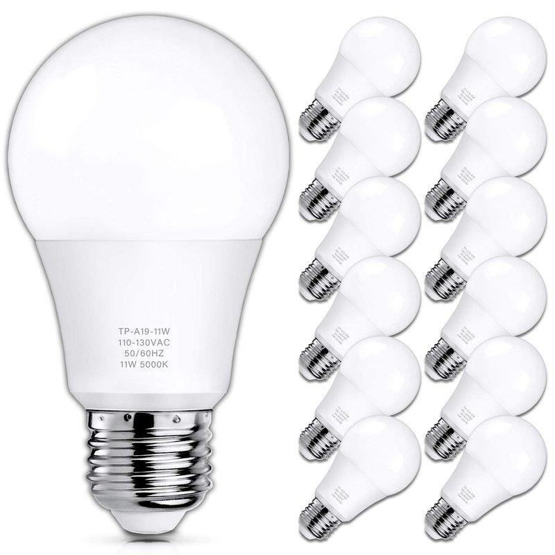 Introductions: A19 LED Light Bulbs, 100 Watt Equivalent LED Bulbs, 5000K Daylight White, 1100 Lumens, Standard E26 Medium Base, Non-Dimmable, 11W Super Bright White LED Bulbs for Living Room Kitchen, Pack of 12 Specifications: Brightness: 1100 lumen Wattage: 11 watts Bulb Voltage: 100-130VAC Frequency: 60Hz Material: Plastic Bulb Base: E26 Medium Base Socket Lifespan: 25000+ Hours CRI: CRI85+ Features: Not Dimmable; Instant On; No Flicker & Noise; Durable-Shatter Resistant; 90% energy saving; No radiation, No pollution, No lead or mercury; Original Brightness; Latest Advanced LED Chips Save energy & Super bright hue: Replace 100 watt equivalent incandescent bulb by 11 watt LED A19 bulbs, Up to 90 % energy saving. Emit over 1100 lumens brightness Please be rest assured to purchase: Quality is always our priority. We Insist on using good quality materials on LEDs, Our LEDs are no breakable parts, toxic chemicals, UV, IR Radiation. Recommended Applications: Fixtures: Pendant Light, Chandelier, Hanging Light, Floor Lamp, Wall Sconce, Table Lamp, Desk Lamp, Ceiling Light. Areas: Bathroom, Kitchen, Basement, Hotel, Powder Room, Restaurant, Bedroom, Study Room, Farmhouse, Living Room, Workshop, Shop, Office, Hallway, Entryway, Porch, Balcony, Stair, Window, TV Side, Bar, Cafe, Foyer, Mudroom, Guest Room, Galley. Package includes: 12 x LED Light Bulb 1 x User Manual