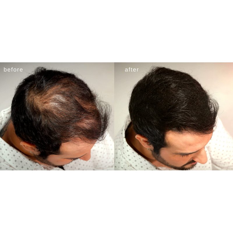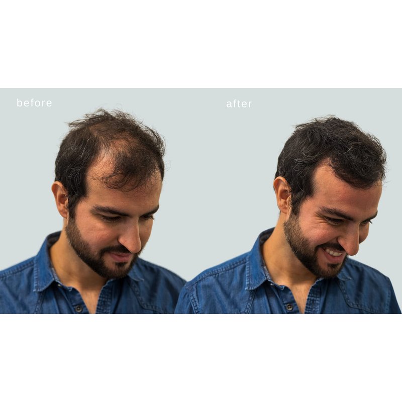 - Instantly Eliminate the Appearance of Thinning Hair & Baldness with an easy 30 seconds application resulting in a 100% natural-looking thick, fuller hair. Each container includes 25 Grams / 0.88 OZ of top-quality hair-thickening fibers that would provide the average user with more than two whole months of applications. Actual usage varies from person to person depending on individual thinning hair needs