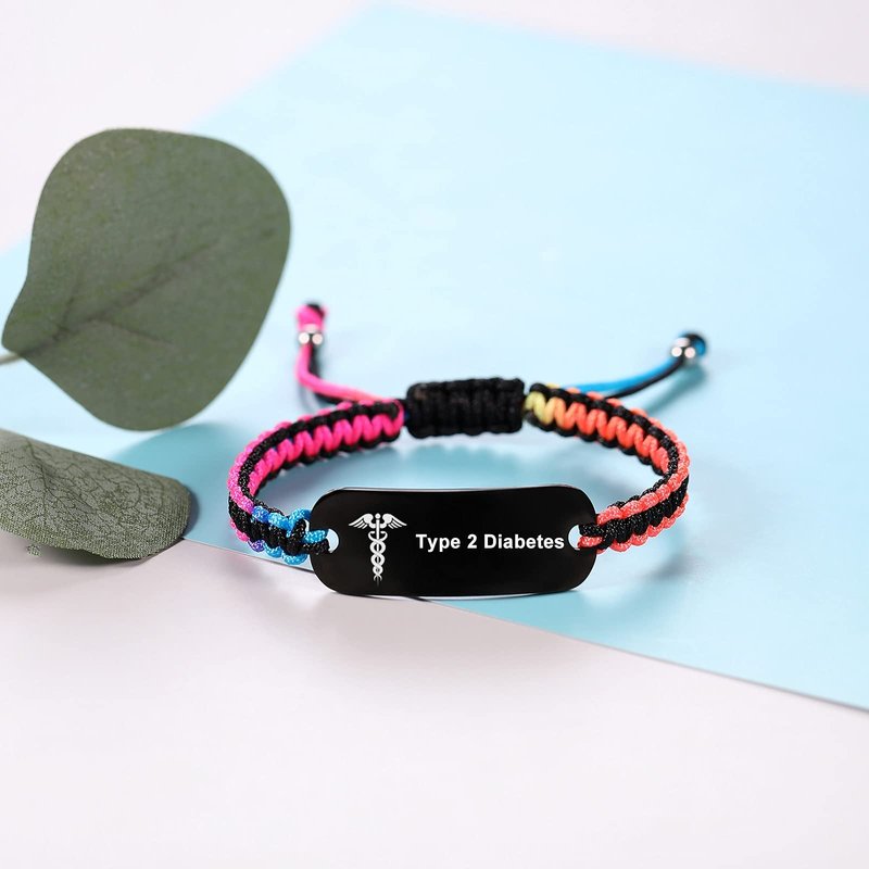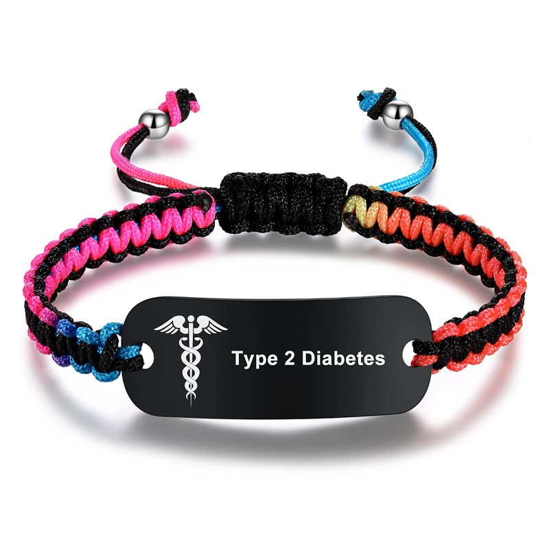 - 🌻All orders are laser-engraved with stainless steel, not print, the engrave information will last many years & won't fade. The front of the medical bracelet is engraved with TYPE 2 DIABETES.