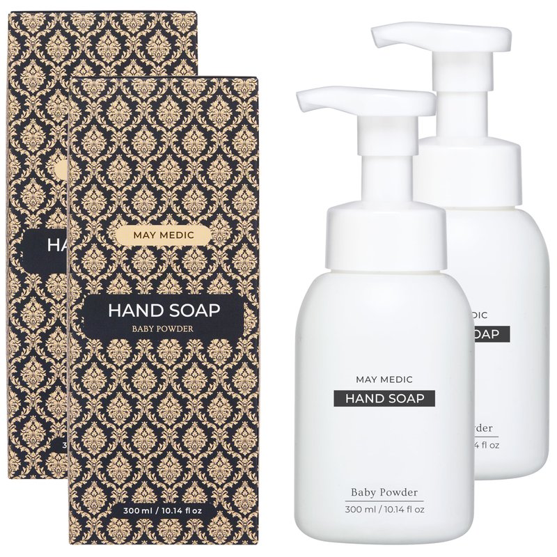 May Medic Baby Powder Double Scented Foaming Hand Soap, Moisturizing Foam with Fig and Pomegranate Extract, Vegan Wash for Bathroom and Kitchen, 10.14 fl oz (2)
