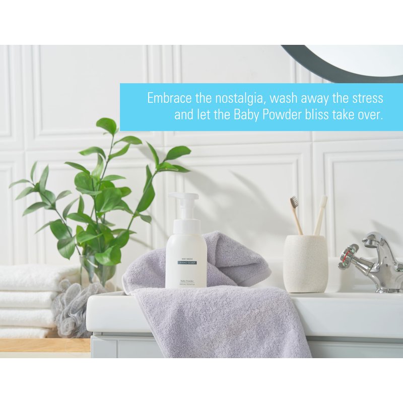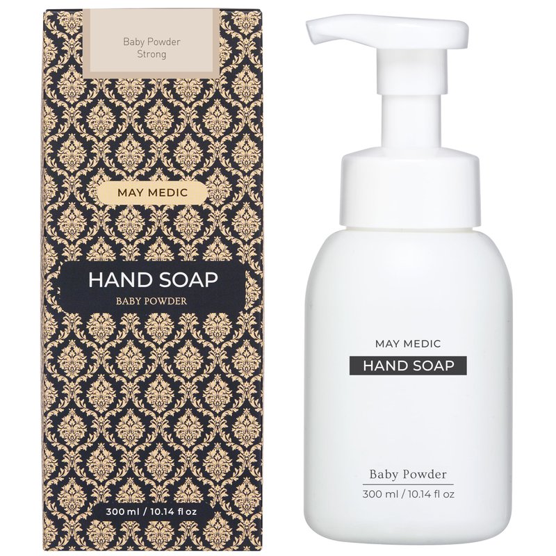 May Medic Baby Powder Strong Scented Foaming Hand Soap, Moisturizing Foam with Fig and Pomegranate Extract, Vegan Wash for Bathroom and Kitchen, 10.14 fl oz