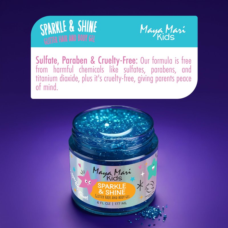 Maya Mari Kids Sparkle & Shine Glitter Hair and Body Gel, Sulfate, Paraben & Cruelty-Free, Made in The USA, Makeup Accessories, Fun for All Ages, Teens and Tweens, Boys and Girls, 6 oz